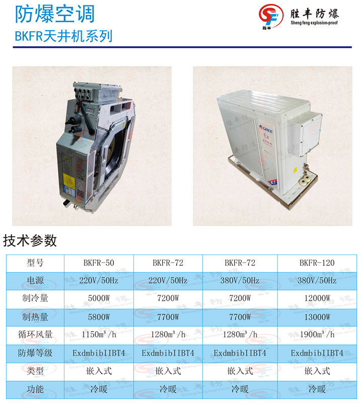 产品特点: ◆防爆空调是在优质名牌空调的基础上,按照GB3836系列标准的要求进行防爆设计,采用特殊加工工艺和制造方法进行防爆加工处理; ◆ 防爆空调管路连接安装和普通空调一样,电气连接一定要按防爆电器安装工艺要求,先将电源引入防爆控制箱,再从防爆控制箱分别引入到室内机和室外机; ◆ 可根据用户要求,对现场特殊空调设备进行防爆处理。例如:大型冷水机组、冷冻机组、中央空调设备以及特殊安装形式的空调设备进行防爆处理,我们将设计制造方案,提交用户查,必要时,可根据用户要求,申请国家级防爆检测中心在现场进行产品防爆性能检测; ◆ 所有防爆空调出厂时,均附有全套产品技术资料和安装使用说明书,请用户务必严格按说明书的要求进行安装和使用; ◆ 产品结构紧凑,造型美观大方,安装维护方便 ◆ 整机多重安全保护。 ◆ 高效压缩机,强劲,省电、低噪音。 ◆ 钢管或电缆布线◆ 轻便设计,保养维护轻松方便。 ★整机采用超弱电技术隔离本质安全型电路,经特殊工艺制造和防爆处理,产品的设计、制造严格按产品严格按照国家相关标准: GB 3836.1-2000 《爆炸性气体环境用电气设备第1部分:通用要求》符合下列标准: GB3836.1-2010《爆炸性环境 第1部分:设备 通用要求》 GB3836.2-2010《爆炸性环境 第2部分:由隔爆外壳“d”保护的设备》 GB3836.4-2010《爆炸性环境 第4部分:由本质安全型“i”保护的设备》 GB3836.9-2006《爆炸性气体环境用电气设备 第9部分:浇封型“m”》 GB3836.15-2000《爆炸性气体环境用电气设备 第15部分:危险场所电气安装(煤矿除外)》 防爆标志:ExdmbibIIBT4Gb;ExdmbibIICT4Gb 注:默认防爆等级IIBT4;如要求IICT4请备注需求。